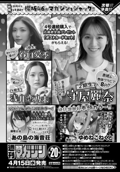 【4/15発売】「週刊少年マガジン 2026年 20号」表紙:守屋麗奈 / 谷口愛季 浅井恋乃未(櫻坂46)