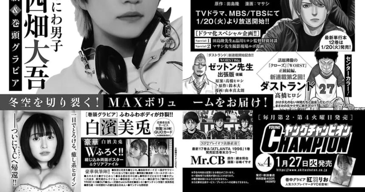 【1/27発売】「ヤングチャンピオン 2026年 No.4」巻頭:白濱美兎 / 紅羽りお