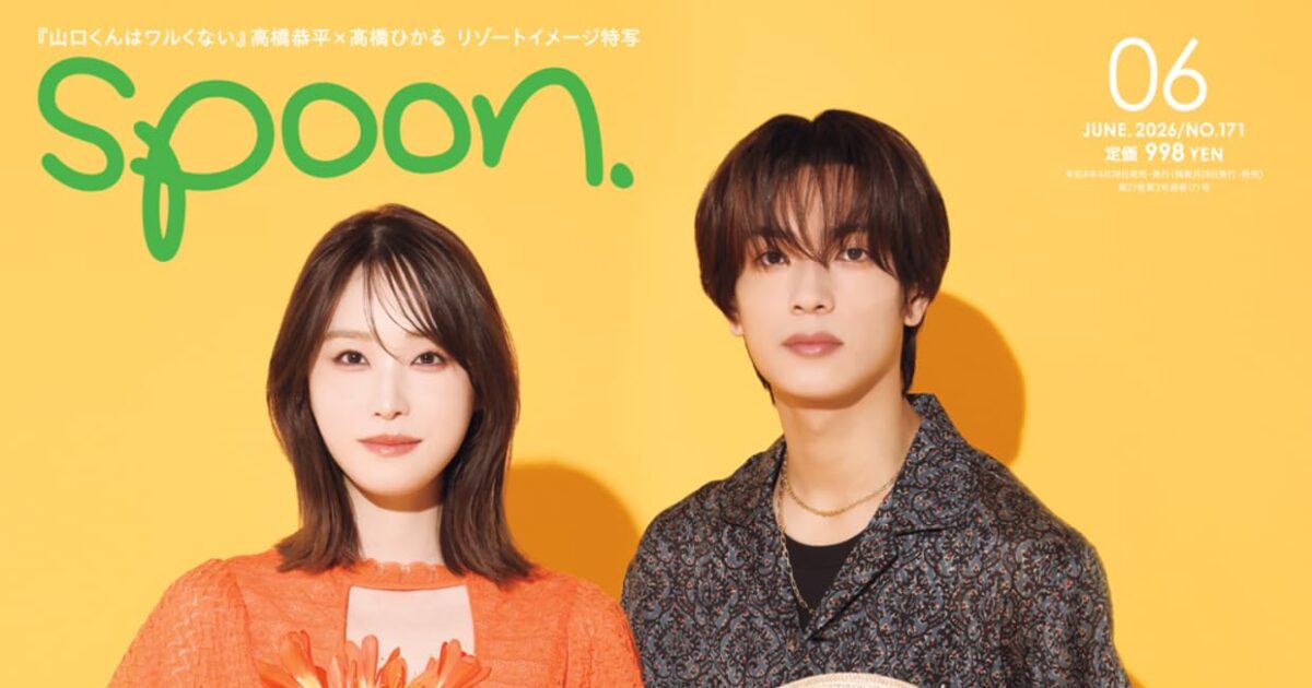 amazon.co.jp 【4/28発売】「spoon. 2026年 6月号」表紙:髙橋ひかる × 高橋恭平(なにわ男子) ポストする シェアする LINEで送る 更新日 : 2026年4月22日(水) spoon. KADOKAWA 隔月刊(偶数月28日) 公式サイト 公式SNS ▼バックナンバー検索 Amazon 楽天ブックス 楽天市場 spoon. No.171 2026年 6月号表紙・巻頭撮り下ろし対談12P髙橋ひかる × 高橋恭平(なにわ男子) Amazonで見る楽天ブックスで見る 紙版を購入 販売期間や在庫状況により、リンク先のショップで購入できない場合があります。ご了承ください。