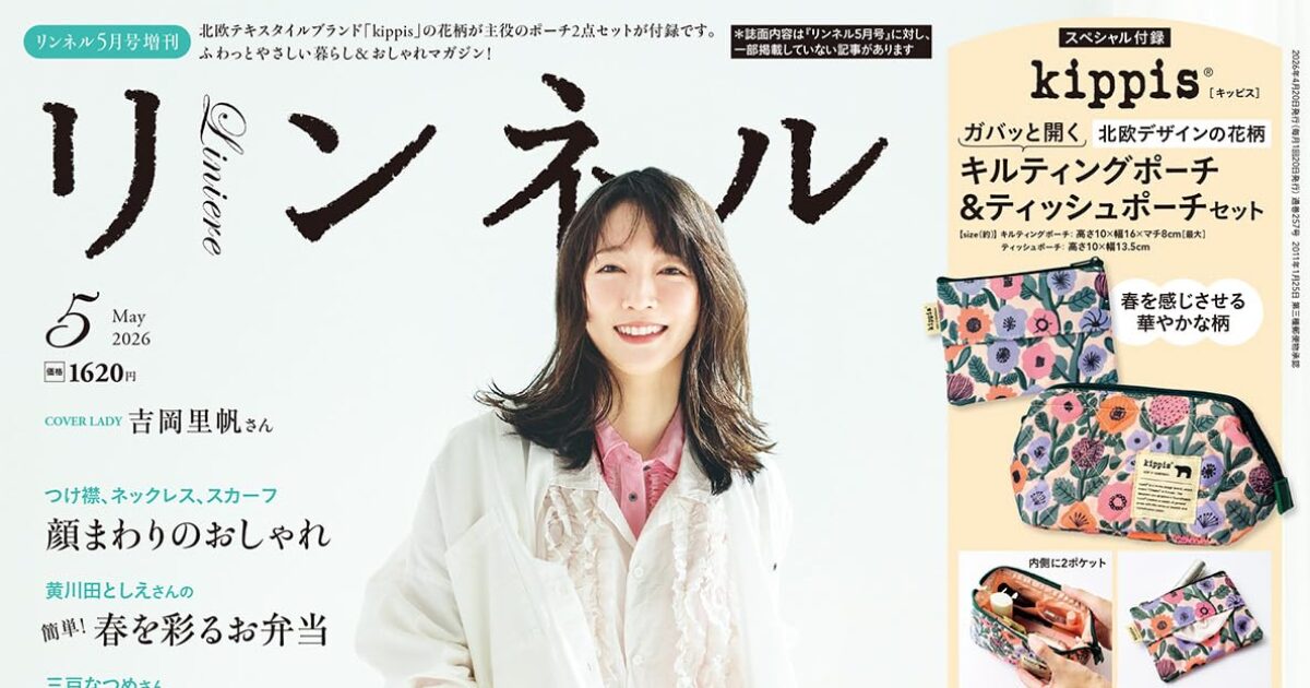 【3/19発売】「リンネル 2026年 5月号」表紙:吉岡里帆 ポストする シェアする LINEで送る 更新日 : 2026年3月13日(金) リンネル 宝島社 月刊(毎月20日) 公式サイト 公式SNS ▼バックナンバー検索 Amazon 楽天ブックス 楽天市場 リンネル 2026年 5月号 通常版 / 増刊表紙吉岡里帆特集「それ、どこの?」がうれしい春を連れてくる服【通常版】特別付録パペットスンスンかわいくて便利な缶ケース入りミニ文具セット【増刊】特別付録kippis [キッピス]北欧デザインの花柄ガバっと開くキルティングポーチ&ティッシュポーチセット 楽天ブックスで見る楽天市場で見る 紙版を購入 販売期間や在庫状況により、リンク先のショップで購入できない場合があります。ご了承ください。
