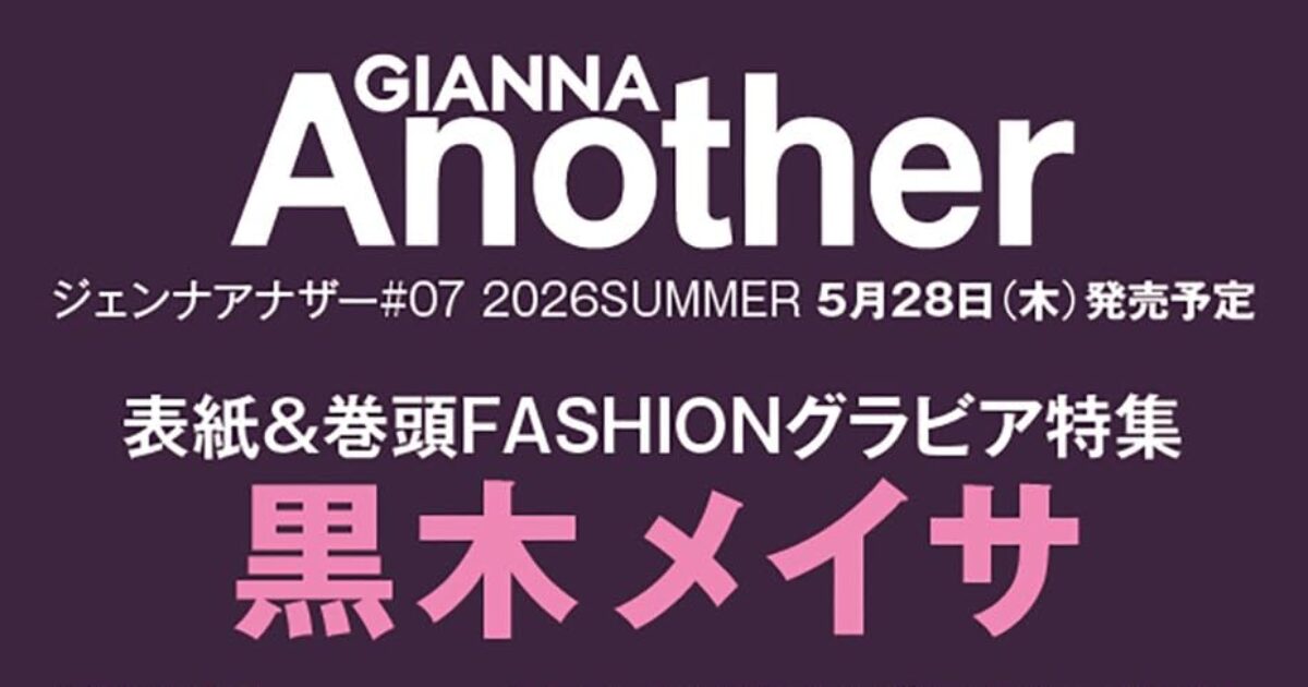 amazon.co.jp 【5/28発売】「GIANNA Another #07」表紙:黒木メイサ ポストする シェアする LINEで送る 更新日 : 2026年4月26日(日) GIANNA Another ナンバーセブン ムック本 公式サイト 公式SNS ▼バックナンバー検索 Amazon 楽天ブックス 楽天市場 GIANNA Another(ジェンナ アナザー) #07表紙&巻頭ファッション特集黒木メイサ裏表紙&ファッション特集志村秀哉・森次政裕(超特急)ファッション特集鳴海唯瀧本美織NEXZ Amazonで見る楽天ブックスで見る楽天市場で見る 紙版を購入 販売期間や在庫状況により、リンク先のショップで購入できない場合があります。ご了承ください。