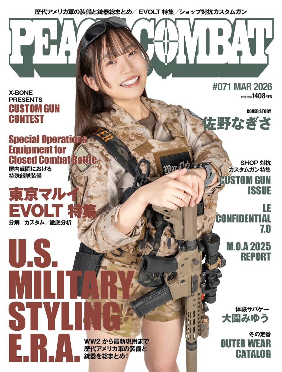 amazon.co.jp 【1/27発売】「PEACE COMBAT Vol.71 2026年 3月号」表紙:佐野なぎさ ポストする シェアする LINEで送る 更新日 : 2026年1月14日(水) PEACE COMBAT アストワ 隔月刊(奇数月27日) 公式サイト 公式SNS ▼バックナンバー Amazonで検索 楽天ブックスで検索 楽天市場で検索 PEACE COMBAT(ピースコンバット) Vol.71 2026年 3月号表紙佐野なぎさ掲載体験サバゲー:大園みゆう Amazonで見る 紙版を購入 販売期間や在庫状況により、リンク先のショップで購入できない場合があります。ご了承ください。