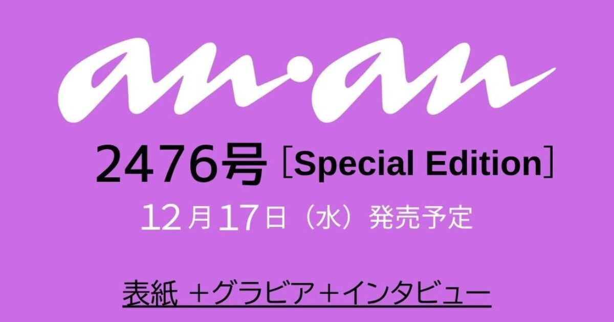 amazon.co.jp 【12/17発売】「anan No.2476 スペシャルエディション」表紙:Perfume ポストする シェアする LINEで送る 更新日 : 2025年11月19日(水) anan マガジンハウス 週刊(毎週水曜日) 公式サイト 公式SNS ▼バックナンバー Amazonで検索 楽天ブックスで検索 楽天市場で検索 anan(アンアン) No.2472 増刊 スペシャルエディション表紙・グラビア・インタビューPerfume Amazonで見る楽天ブックスで見る 紙版を購入 販売期間や在庫状況により、リンク先のショップで購入できない場合があります。ご了承ください。