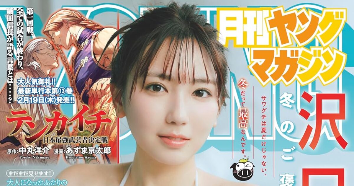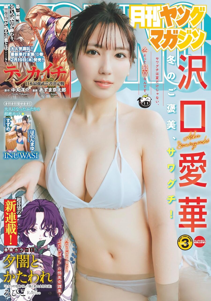 amazon.co.jp 【2/19発売】「月刊ヤングマガジン 2026年 No.3」表紙:沢口愛華 / はのんまゆ × すずめ(INUWASI) ポストする シェアする LINEで送る 更新日 : 2026年2月19日(木) 月刊ヤングマガジン 講談社 月刊(毎月20日) 公式サイト 公式SNS ▼バックナンバー検索 Amazon 楽天ブックス 楽天市場 月刊ヤングマガジン 2026年 No.3表紙&巻頭グラビア沢口愛華グラビアクイーンに死角なし!冬のサワグチも最高♡巻末グラビアはのんまゆ × すずめ(INUWASI)コンビで沖縄ロケ敢行!!大注目アイドルの最新無敵カット満載! Amazonで見るKindle版(電子書籍)楽天ブックスで見る楽天Kobo版(電子書籍)楽天市場で見る 紙版を購入 電子書籍版を購入 販売期間や在庫状況により、リンク先のショップで購入できない場合があります。ご了承ください。