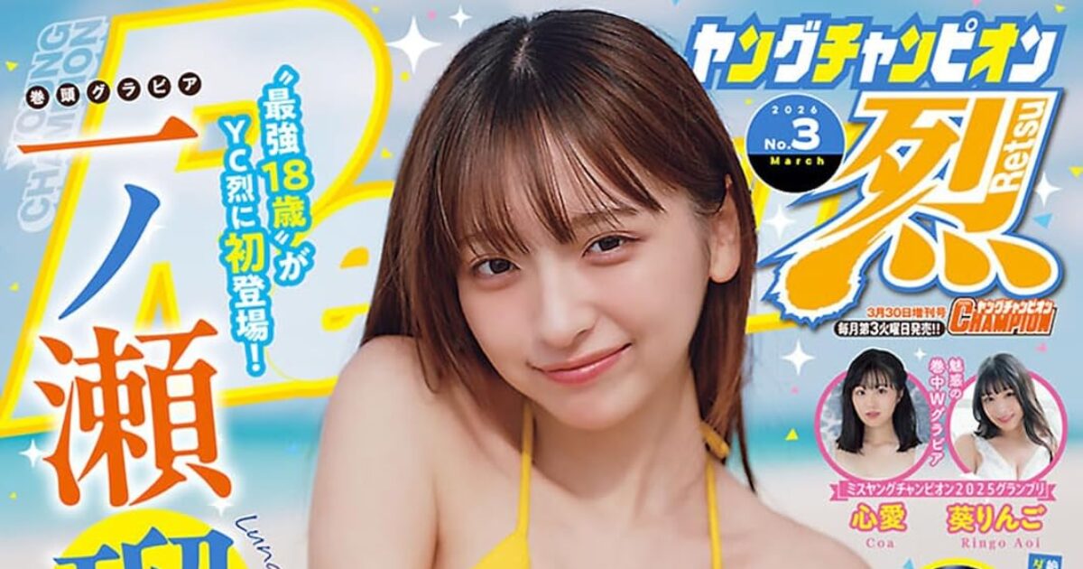 amazon.co.jp 【2/17発売】「ヤングチャンピオン烈 2026年 No.3」表紙:一ノ瀬瑠菜 / 葵りんご 心愛 ポストする シェアする LINEで送る 更新日 : 2026年2月17日(火) ヤングチャンピオン烈 秋田書店 月刊(毎月第3火曜日) 公式サイト 公式SNS ▼バックナンバー検索 Amazon 楽天ブックス 楽天市場 ヤングチャンピオン烈 2026年 3/30号 No.3表紙&巻頭グラビア一ノ瀬瑠菜最強18歳がYC烈に初登場♡鮮烈水着グラビアWセンターグラビア<ミスヤングチャンピオン2025 グランプリ>葵りんご心愛付録一ノ瀬瑠菜 両面クリアファイル応募者全員サービス一ノ瀬瑠菜 特製QUOカード 3種プレゼント一ノ瀬瑠菜 サイン付き生チェキ Amazonで見るKindle版(電子書籍)楽天ブックスで見る楽天Kobo版(電子書籍)楽天市場で見る 紙版を購入 電子書籍版を購入 販売期間や在庫状況により、リンク先のショップで購入できない場合があります。ご了承ください。