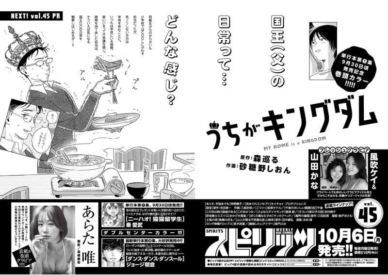 amazon.co.jp 【10/6発売】「週刊ビッグコミックスピリッツ 2025年 No.45」表紙:あらた唯 / 風吹ケイ 山田かな ポストする シェアする LINEで送る 更新日 : 2025年10月6日(月) 週刊ビッグコミックスピリッツ 小学館 週刊(毎週月曜日) 公式サイト 公式SNS ▼バックナンバー Amazonで検索 楽天ブックスで検索 楽天市場で検索 週刊ビッグコミックスピリッツ 2025年 10/20号 No.45表紙&巻頭グラビアあらた唯大好評につき、小顔ショートの美脚ラウンドガールが再登場!今回は仕事終わりのホテルデートで小悪魔な表情を魅せちゃいます!!フレッシュグラビア風吹ケイ × 山田かな Amazonで見るKindle版(電子書籍)楽天Kobo版(電子書籍)楽天市場で見る 紙版を購入 電子書籍版を購入 販売期間や在庫状況により、リンク先のショップで購入できない場合があります。ご了承ください。