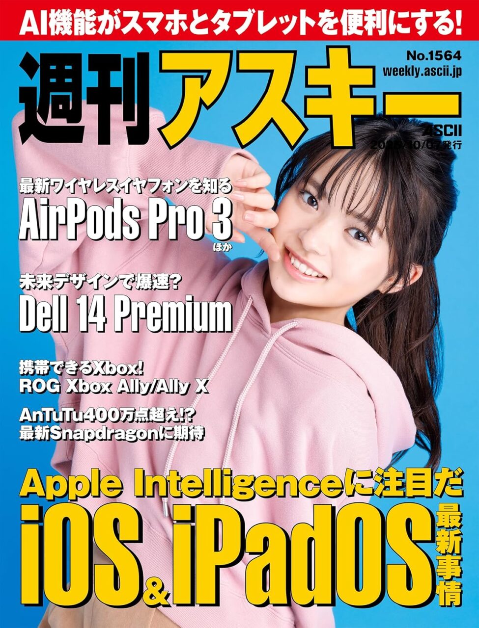 【10/7発売】「週刊アスキー No.1564」表紙:小森香乃 ポストする シェアする LINEで送る 更新日 : 2025年10月7日(火) 週刊アスキー 角川アスキー総合研究所 週刊(毎週月曜日) 公式サイト 公式SNS ▼バックナンバー Amazonで検索 楽天ブックスで検索 週刊アスキーNo.1564表紙小森香乃特集iOS 26 iPadOS 26便利機能AirPods Proかそれ以外か? 最新イヤフォン Kindle版(電子書籍)楽天Kobo版(電子書籍) 電子書籍版を購入 販売期間や在庫状況により、リンク先のショップで購入できない場合があります。ご了承ください。