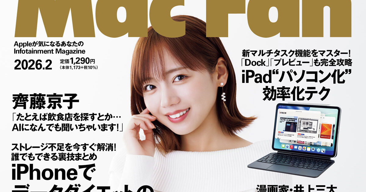 amazon.co.jp 【12/27発売】「Mac Fan 2026年 2月号」表紙:齊藤京子 ポストする シェアする LINEで送る 更新日 : 2025年12月25日(木) Mac Fan マイナビ出版 月刊(毎月29日) 公式サイト 公式SNS ▼バックナンバー Amazonで検索 楽天ブックスで検索 楽天市場で検索 Mac Fan(マックファン) 2026年 2月号表紙齊藤京子特集MacでAI 即効活用ガイドiPad“パソコン化”効率化テクiPhoneでデータダイエットのススメ Amazonで見るKindle版(電子書籍)楽天ブックスで見る楽天市場で見る 紙版を購入 電子書籍版を購入 販売期間や在庫状況により、リンク先のショップで購入できない場合があります。ご了承ください。