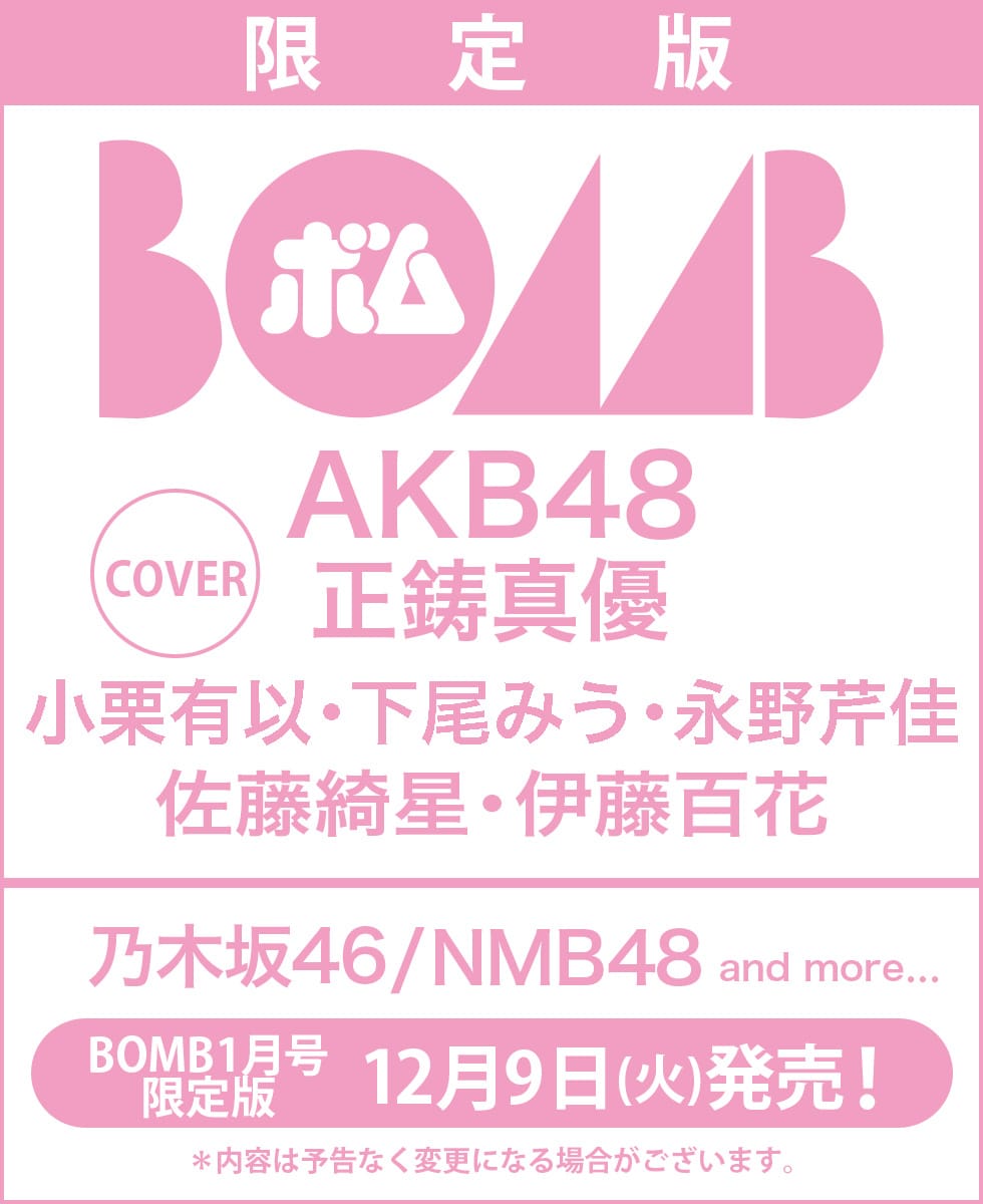 【12/9発売】「BOMB 2026年 1月号」表紙:矢田萌華(乃木坂46) / 小川彩(乃木坂46) 正鋳真優(AKB48) etc.