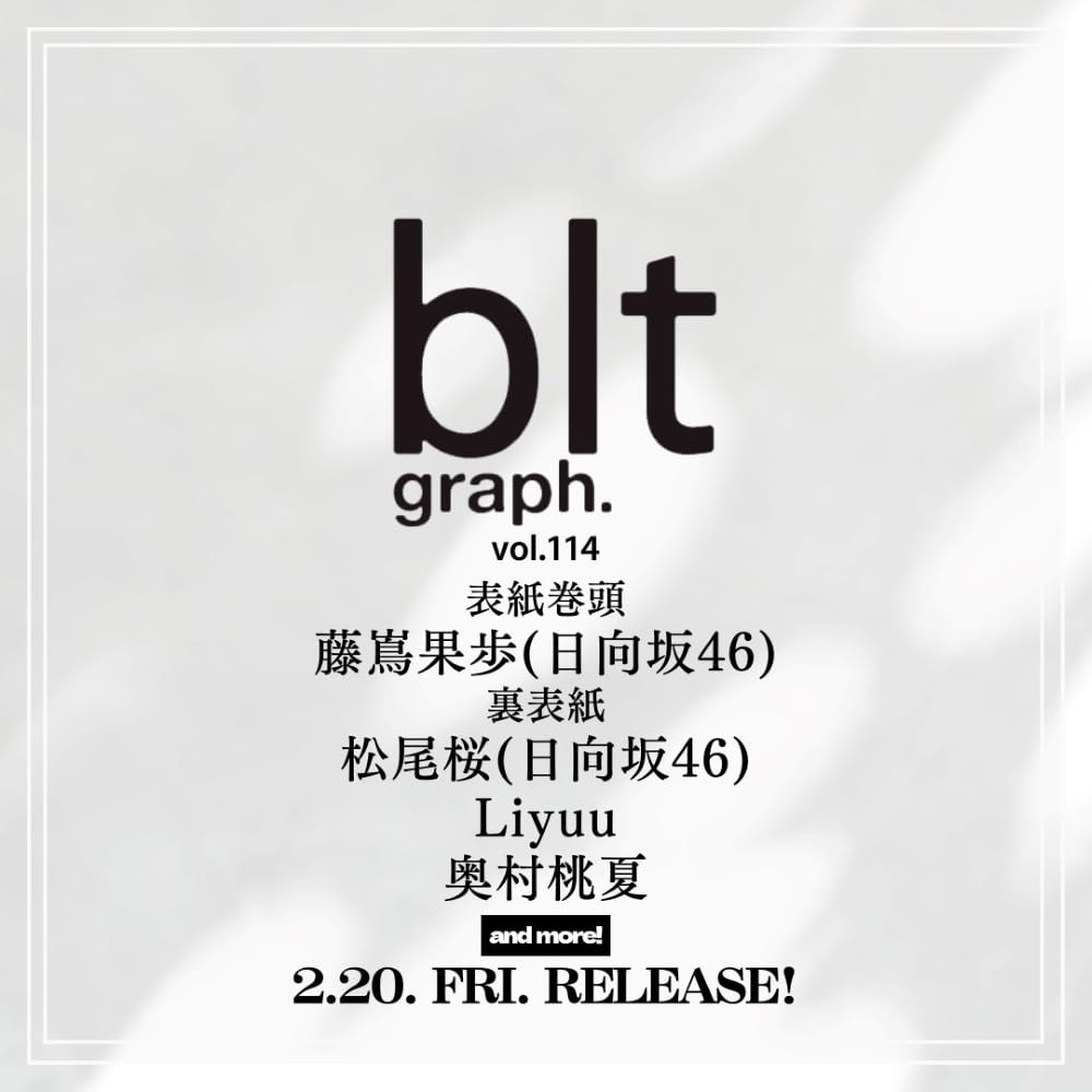 amazon.co.jp 【2/20発売】「blt graph. vol.114」表紙:藤嶌果歩(日向坂46) ポストする シェアする LINEで送る 更新日 : 2026年1月23日(金) blt graph. 東京ニュース通信社 ムック本 公式サイト 公式SNS ▼バックナンバー検索 Amazon 楽天ブックス 楽天市場 blt graph. vol.114写真クオリティーのグラビア&インタビュー新型マガジン表紙・巻頭藤嶌果歩(日向坂46)裏表紙松尾桜(日向坂46)掲載Liyuu(Liella!)奥村桃夏別冊付録藤嶌果歩(日向坂46) 特大ポスター 全2種 Amazonで見る楽天市場で見る 紙版を購入 販売期間や在庫状況により、リンク先のショップで購入できない場合があります。ご了承ください。