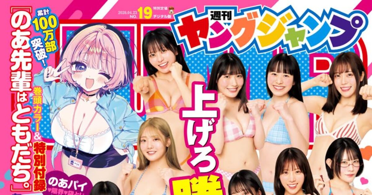 amazon.co.jp 【4/9発売】「週刊ヤングジャンプ 2026年 No.19」表紙:サキドルエース SURVIVAL SEASON15 ~アイドルは旅をする~ ポストする シェアする LINEで送る 更新日 : 2026年4月4日(土) 週刊ヤングジャンプ 集英社 週刊(毎週木曜日) 公式サイト 公式SNS ▼バックナンバー検索 Amazon 楽天ブックス 楽天市場 週刊ヤングジャンプ 2026年 4/23号 No.19 表紙&巻頭&センター&巻末グラビア サキドルエース SURVIVAL SEASON15 ~アイドルは旅をする~ 特別付録 『のあ先輩はともだち。』8P小冊子 のあパイ・限界・袋とじイラスト集 Amazonで見るKindle版(電子書籍)楽天Kobo版(電子書籍) 紙版を購入 電子書籍版を購入 販売期間や在庫状況により、リンク先のショップで購入できない場合があります。ご了承ください。