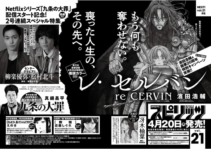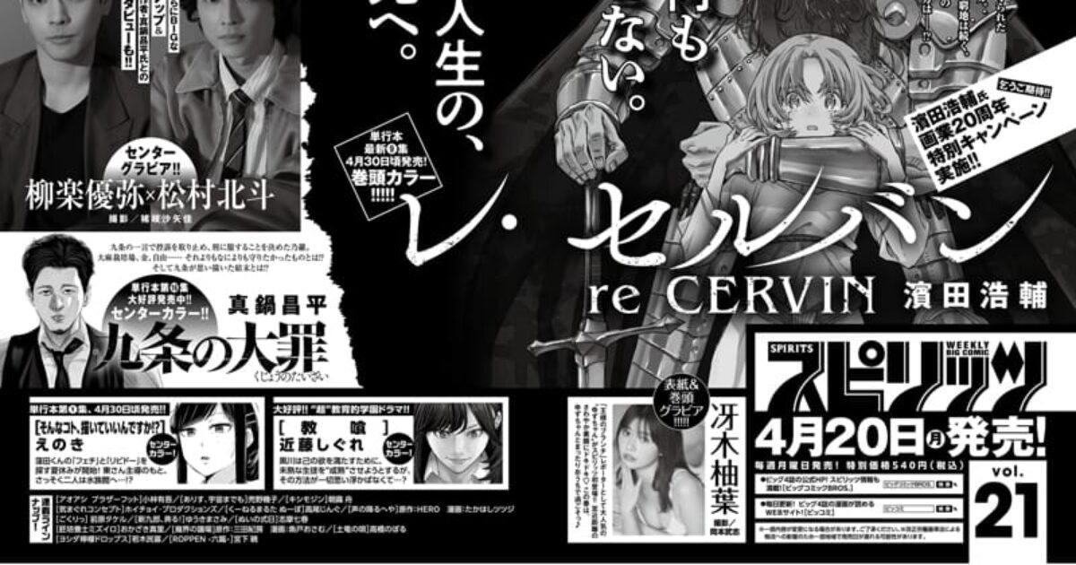 amazon.co.jp 【4/13発売】「週刊ビッグコミックスピリッツ 2026年 No.21」表紙:冴木柚葉 ポストする シェアする LINEで送る 更新日 : 2026年4月13日(月) 週刊ビッグコミックスピリッツ 小学館 週刊(毎週月曜日) 公式サイト 公式SNS ▼バックナンバー検索 Amazon 楽天ブックス 楽天市場 週刊ビッグコミックスピリッツ 2026年 4/27号 No.21表紙&巻頭グラビア冴木柚葉特大ピンナップ&センターグラビア&インタビュー柳楽優弥 × 松村北斗(SixTONES) Amazonで見る楽天市場で見る 紙版を購入 販売期間や在庫状況により、リンク先のショップで購入できない場合があります。ご了承ください。