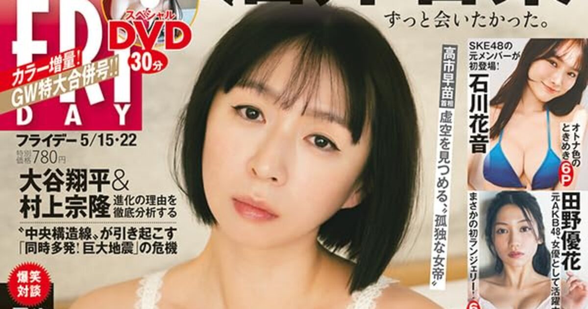 amazon.co.jp 【5/1発売】「FRIDAY 2026年 5/15・22 合併号」表紙:酒井若菜 / 白濱美兎 石川花音 田野優花 etc. ポストする シェアする LINEで送る 更新日 : 2026年4月30日(木) FRIDAY 講談社 週刊(毎週金曜日) 公式サイト 公式SNS ▼バックナンバー検索 Amazon 楽天ブックス 楽天市場 FRIDAY(フライデー) 2026年 5/15・22 合併号表紙&プレミアMINIブック酒井若菜グラビア&ソロDVD30分白濱美兎グラビア石川花音田野優花朝井瞳子清水れい吉田莉々加平川愛里菜連載乃木坂46 乃木撮日向坂46 日向撮櫻坂46 櫻撮 Amazonで見る楽天ブックスで見る楽天市場で見る 紙版を購入 販売期間や在庫状況により、リンク先のショップで購入できない場合があります。ご了承ください。