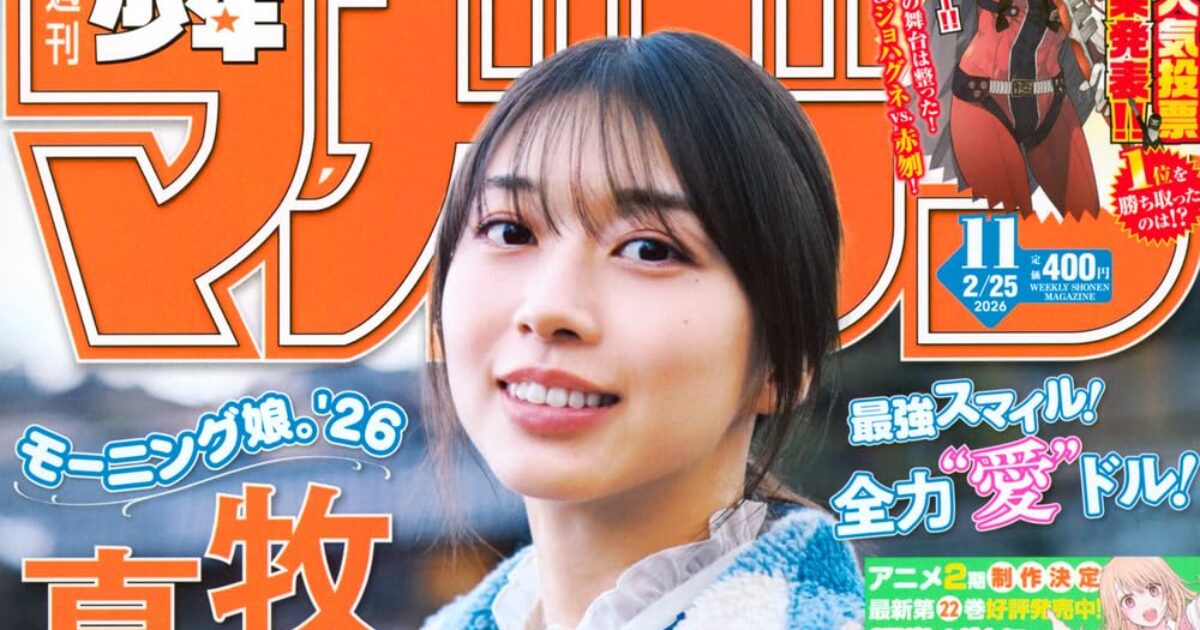 amazon.co.jp 【2/10発売】「週刊少年マガジン 2026年 11号」表紙:牧野真莉愛(モーニング娘。’26) ポストする シェアする LINEで送る 更新日 : 2026年2月10日(火) 週刊少年マガジン 講談社 週刊(毎週水曜日) 公式サイト 公式SNS ▼バックナンバー検索 Amazon 楽天ブックス 楽天市場 週刊少年マガジン 2026年 2/25号 No.11表紙&巻頭グラビア牧野真莉愛(モーニング娘。’26)大人デートな巻頭グラビア8P! グループエースがひさびさに週マガ登場! 最強スマイル! 全力“愛”ドル! 甘くて苦しくて、そういうことの繰り返しが刻まれていく。 Amazonで見るKindle版(電子書籍)楽天Kobo版(電子書籍)楽天市場で見る 紙版を購入 電子書籍版を購入 販売期間や在庫状況により、リンク先のショップで購入できない場合があります。ご了承ください。