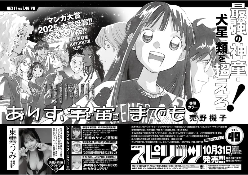 amazon.co.jp 【10/31発売】「週刊ビッグコミックスピリッツ 2025年 No.49」表紙:東雲うみ ポストする シェアする LINEで送る 更新日 : 2025年10月27日(月) 週刊ビッグコミックスピリッツ 小学館 週刊(毎週月曜日) 公式サイト 公式SNS ▼バックナンバー Amazonで検索 楽天ブックスで検索 楽天市場で検索 週刊ビッグコミックスピリッツ 2025年 11/17号 No.49表紙&巻頭グラビア東雲うみGカップバストと100cmヒップを持つ“グラビア界の二刀流”登場!おうちハロウィーンデートで、普段は見せないプライベートな表情を披露! Amazonで見る楽天市場で見る 紙版を購入 販売期間や在庫状況により、リンク先のショップで購入できない場合があります。ご了承ください。