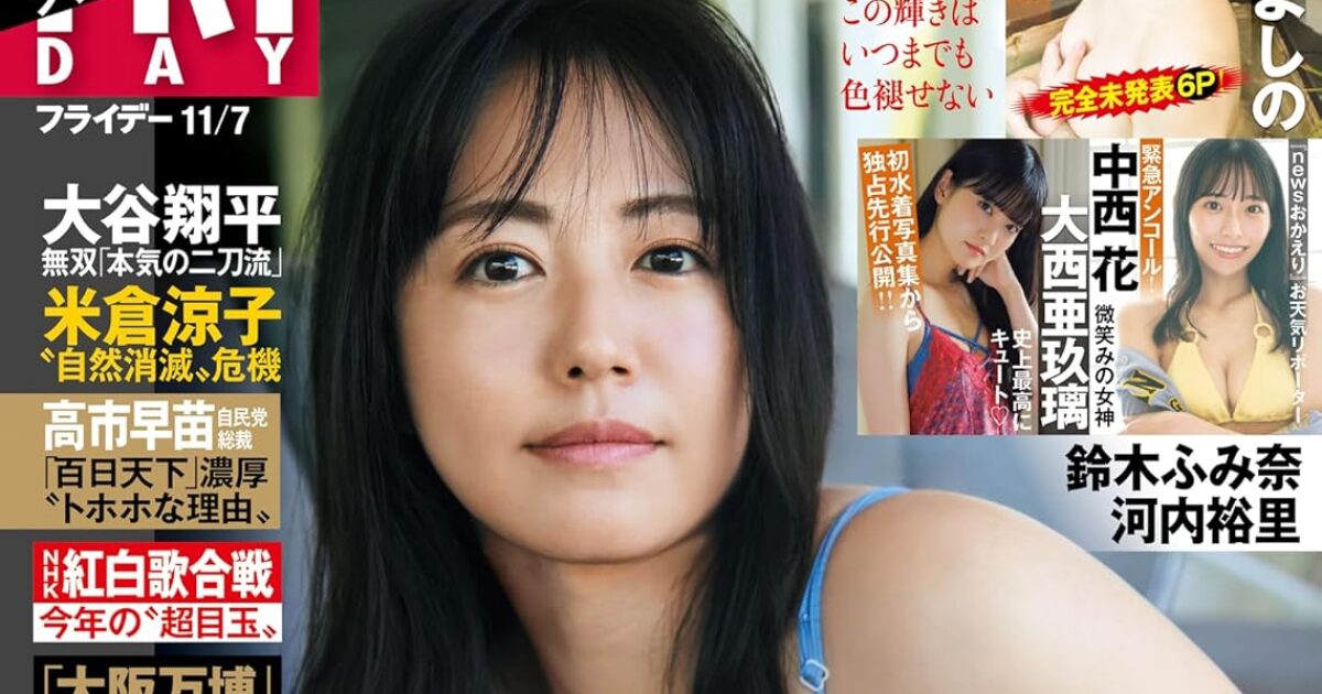 amazon.co.jp 【10/23発売】「FRIDAY 2025年 11/7号」表紙:磯山さやか / 中西花 大西亜玖璃 ちとせよしの 河内裕里 鈴木ふみ奈 etc. ポストする シェアする LINEで送る 更新日 : 2025年10月23日(木) FRIDAY 講談社 週刊(毎週金曜日) 公式サイト 公式SNS ▼バックナンバー Amazonで検索 楽天ブックスで検索 楽天市場で検索 FRIDAY(フライデー) 2025年 11/7号表紙&巻頭グラビア磯山さやかグラビア中西花大西亜玖璃ちとせよしの河内裕里鈴木ふみ奈袋とじグラビア新海まき白川愛梨連載乃木坂46 乃木撮日向坂46 日向撮櫻坂46 櫻撮 Amazonで見るKindle版(電子書籍)楽天ブックスで見る楽天Kobo版(電子書籍)楽天市場で見る 紙版を購入 電子書籍版を購入 販売期間や在庫状況により、リンク先のショップで購入できない場合があります。ご了承ください。