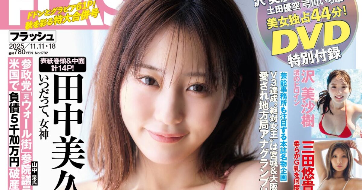 amazon.co.jp 【10/28発売】「FLASH 2025年 11/11・18 合併号」表紙:田中美久 / 土田優空 弓川いち華 沢美沙樹 三田悠貴 etc. ポストする シェアする LINEで送る 更新日 : 2025年10月27日(月) FLASH 光文社 週刊(毎週火曜日) 公式サイト 公式SNS ▼バックナンバー Amazonで検索 楽天ブックスで検索 楽天市場で検索 FLASH(フラッシュ) 2025年 11/11・18 合併号(1792号)表紙&巻頭&中面グラビア ※DVD収録田中美久特別付録DVD 水着美女独占44分!グラビア ※DVD収録土田優空弓川いち華沢美沙樹三田悠貴グラビア入来茉里いくみ未白ちあ(yosugala)神喜ミア山田かな対談相川七瀬 × 持田香織 Amazonで見る楽天ブックスで見る楽天市場で見る 紙版を購入 販売期間や在庫状況により、リンク先のショップで購入できない場合があります。ご了承ください。