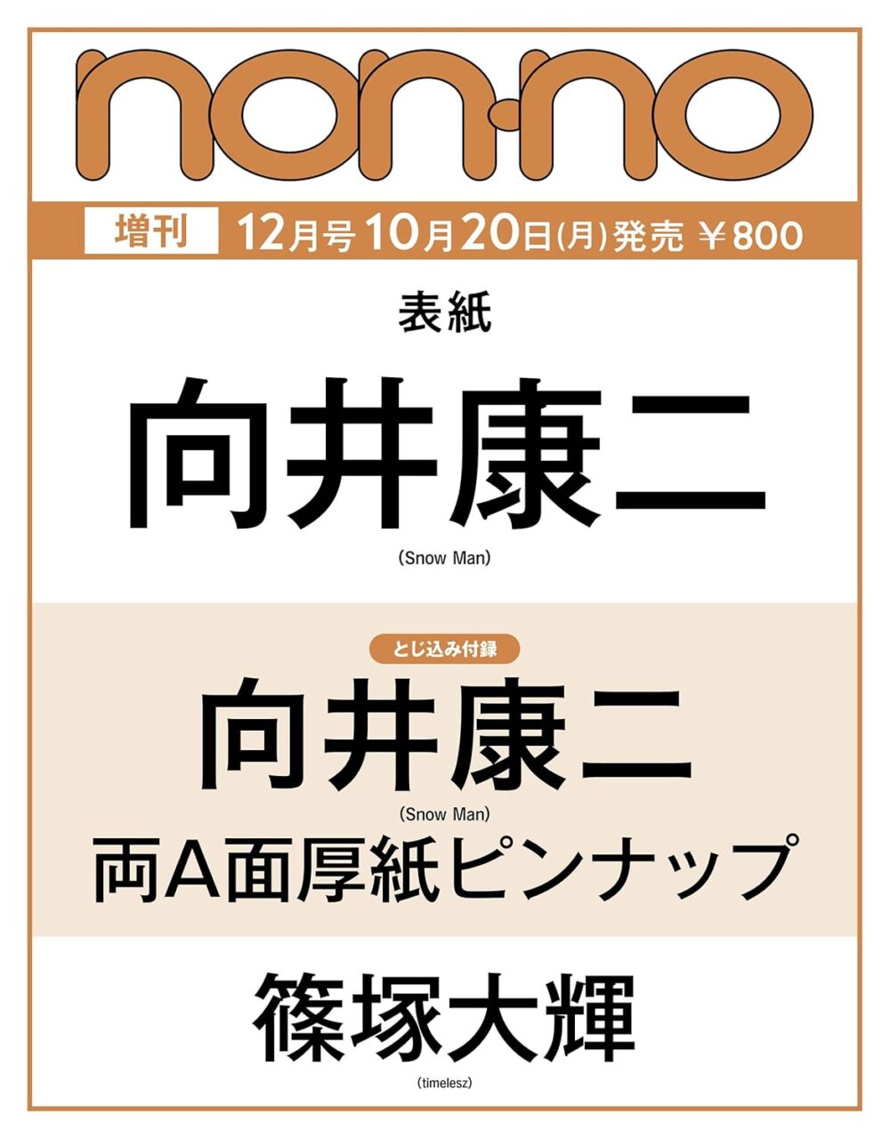 amazon.co.jp 【10/20発売】「non-no 2025年 12月号」表紙:遠藤さくら(乃木坂46) ポストする シェアする LINEで送る 更新日 : 2025年9月20日(土) non-no 集英社 月刊(毎月20日) 公式サイト 公式SNS ▼バックナンバー Amazonで検索 楽天ブックスで検索 楽天市場で検索 non-no(ノンノ) 2025年 12月号 通常版 / 増刊【通常版】表紙遠藤さくら(乃木坂46)【増刊】表紙向井康二(Snow Man)とじ込み付録向井康二 両A面厚紙ピンナップ掲載篠塚大輝(timelesz)ほかnon-no 専属モデル[参考]岡本夏美遠藤さくら(乃木坂46)横田真悠紺野彩夏香音久間田琳加出口夏希林芽亜里小宮山莉渚井上和(乃木坂46)菊地姫奈村上なずな佐藤和奏小坂菜緒(日向坂46)加藤栞 Amazonで見る楽天ブックスで見る 紙版を購入 販売期間や在庫状況により、リンク先のショップで購入できない場合があります。ご了承ください。