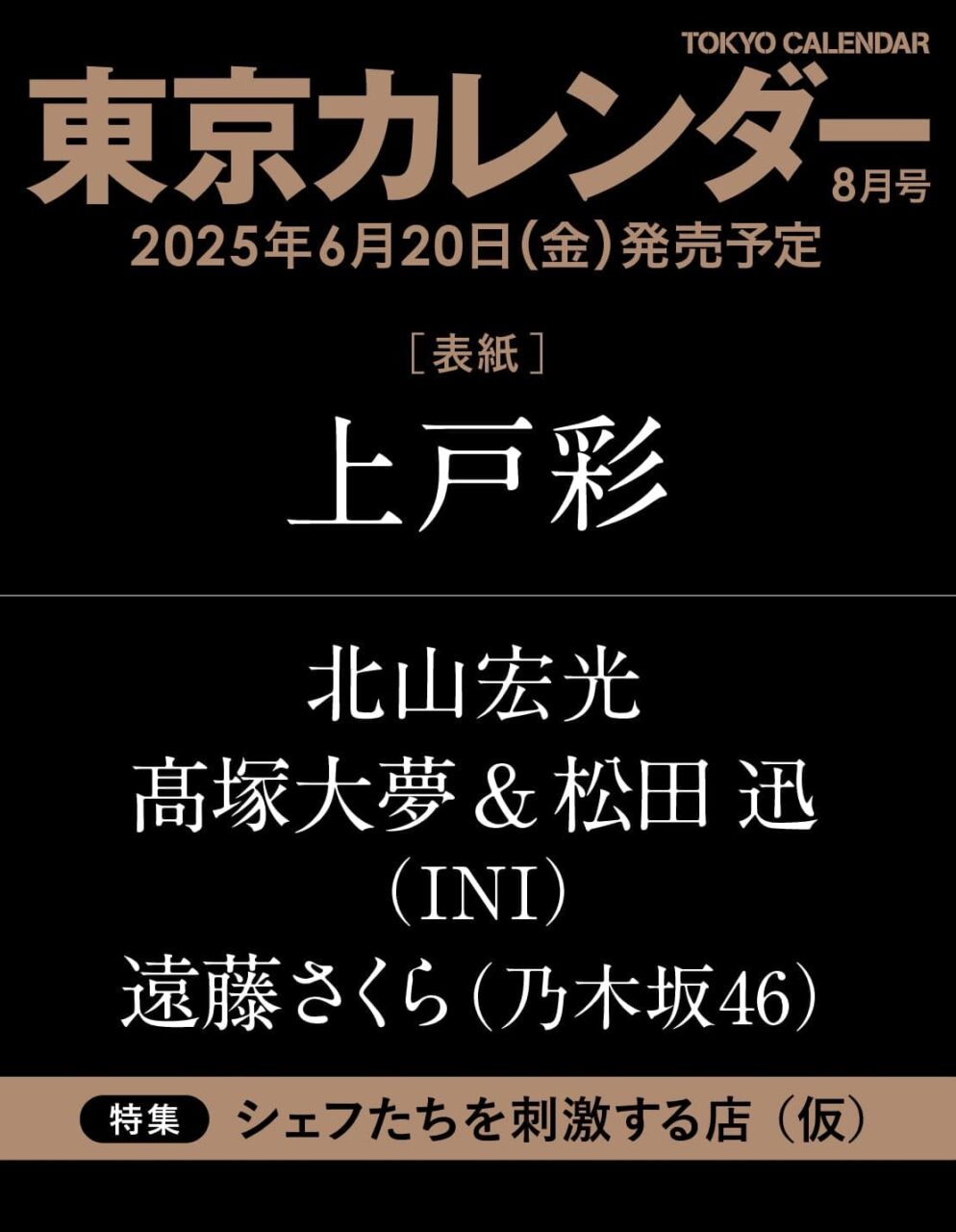 amazon.co.jp 【6/20発売】「東京カレンダー 2025年 8月号」表紙:上戸彩 / 遠藤さくら(乃木坂46) ポストする シェアする LINEで送る 更新日 : 2025年6月20日(金) 東京カレンダー 東京カレンダー 月刊(毎月21日) 公式サイト 公式SNS ▼バックナンバー Amazonで検索 楽天ブックスで検索 楽天市場で検索 東京カレンダー 2025年 8月号 表紙 上戸彩経験豊かな女性は銀座フレンチが似合う 特集 シェフたちを刺激する店。 インタビュー 北山宏光遠藤さくら(乃木坂46)髙塚大夢 × 松田迅(INI) Amazonで見るKindle版(電子書籍)新刊・バックナンバーを検索する 紙版を購入 電子書籍版を購入 販売期間や在庫状況により、リンク先のショップで購入できない場合があります。ご了承ください。