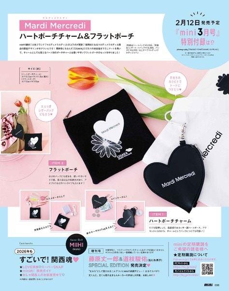 amazon.co.jp 【2/12発売】「mini 2026年 3月号」表紙:MIIHI(NiziU) ポストする シェアする LINEで送る 更新日 : 2026年1月10日(土) mini 宝島社 月刊(毎月12日) 公式サイト 公式SNS ▼バックナンバー Amazonで検索 楽天ブックスで検索 楽天市場で検索 mini(ミニ) 2026年 3月号 通常版 / 増刊 SPECIAL EDITION【通常版】表紙MIIHI(NiziU)【増刊】表紙藤原丈一郎 × 道枝駿佑(なにわ男子)【通常版】特別付録Mardi Mercredi[マルディメクルディ]ハートポーチチャーム&フラットポーチ特集2026年もすごいで! 関西魂♡ Amazonで見る楽天市場で見る 紙版を購入 販売期間や在庫状況により、リンク先のショップで購入できない場合があります。ご了承ください。