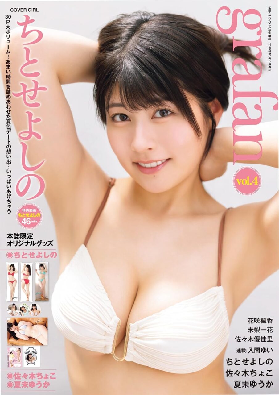 amazon.co.jp 【8/28発売】「grafan vol.4」表紙:ちとせよしの / 佐々木ちょこ 夏未ゆうか 花咲楓香 未梨一花 佐々木優佳里 ポストする シェアする LINEで送る 更新日 : 2025年8月28日(木) grafan 三和出版 - 公式サイト 公式SNS ▼バックナンバー Amazonで検索 楽天ブックスで検索 grafan(グラファン) vol.4 [MEN’S DVD 2025年 10月号増刊]表紙&巻頭グラビアちとせよしの(あまいものつめあわせ)裏表紙&巻末グラビア佐々木ちょこ(未完成のキャラメル)グラビア夏未ゆうか(イイトコドリ)花咲楓香未梨一花佐々木優佳里連載入間ゆい Amazonで見るKindle版(電子書籍) 紙版を購入 電子書籍版を購入 販売期間や在庫状況により、リンク先のショップで購入できない場合があります。ご了承ください。
