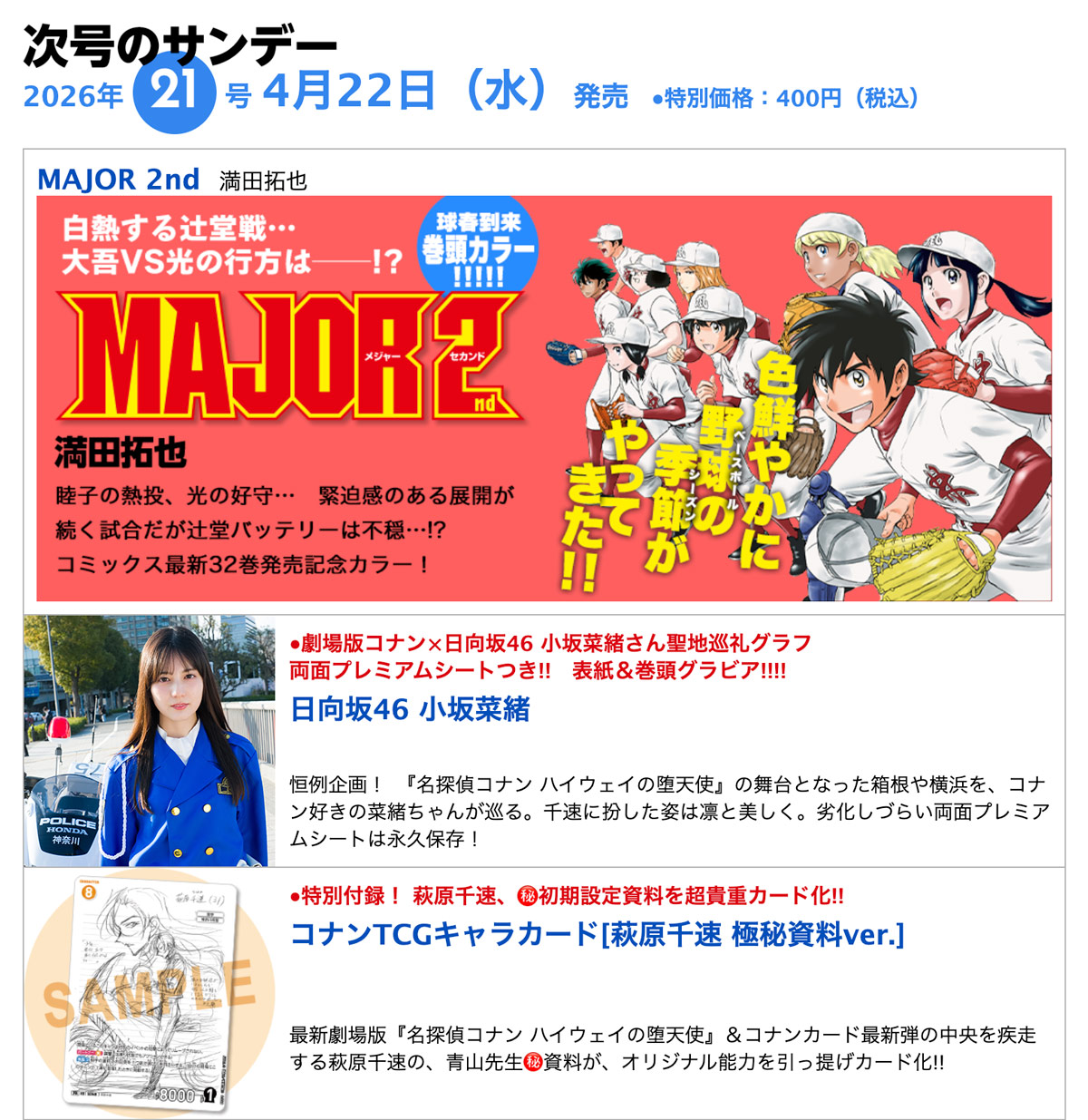 — 【公式】少年サンデー編集部 (@shonen_sunday) April 20, 2026
