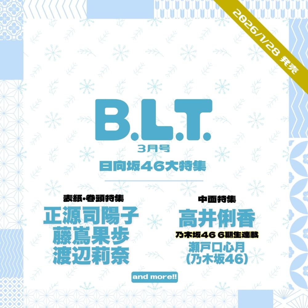 【1/28発売】「B.L.T. 2026年 3月号」表紙:正源司陽子・藤嶌果歩・渡辺莉奈 (日向坂46)