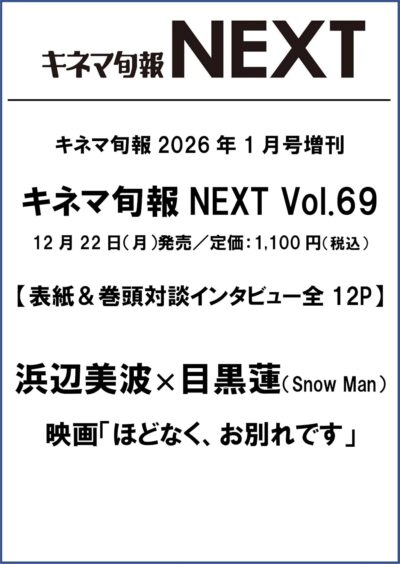 12/22発売】「キネマ旬報NEXT vol.69」表紙:浜辺美波 × 目黒蓮(Snow Man)