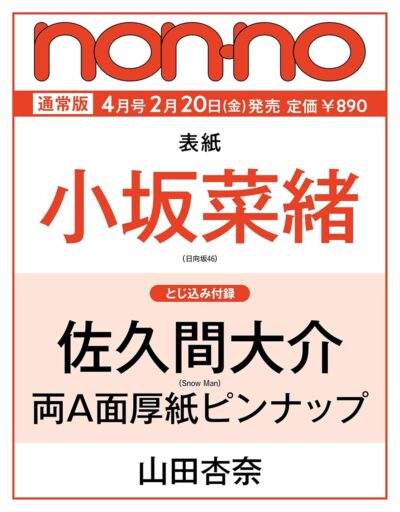 【2/20発売】「non-no 2026年 4月号」表紙:小坂菜緒(日向坂46)